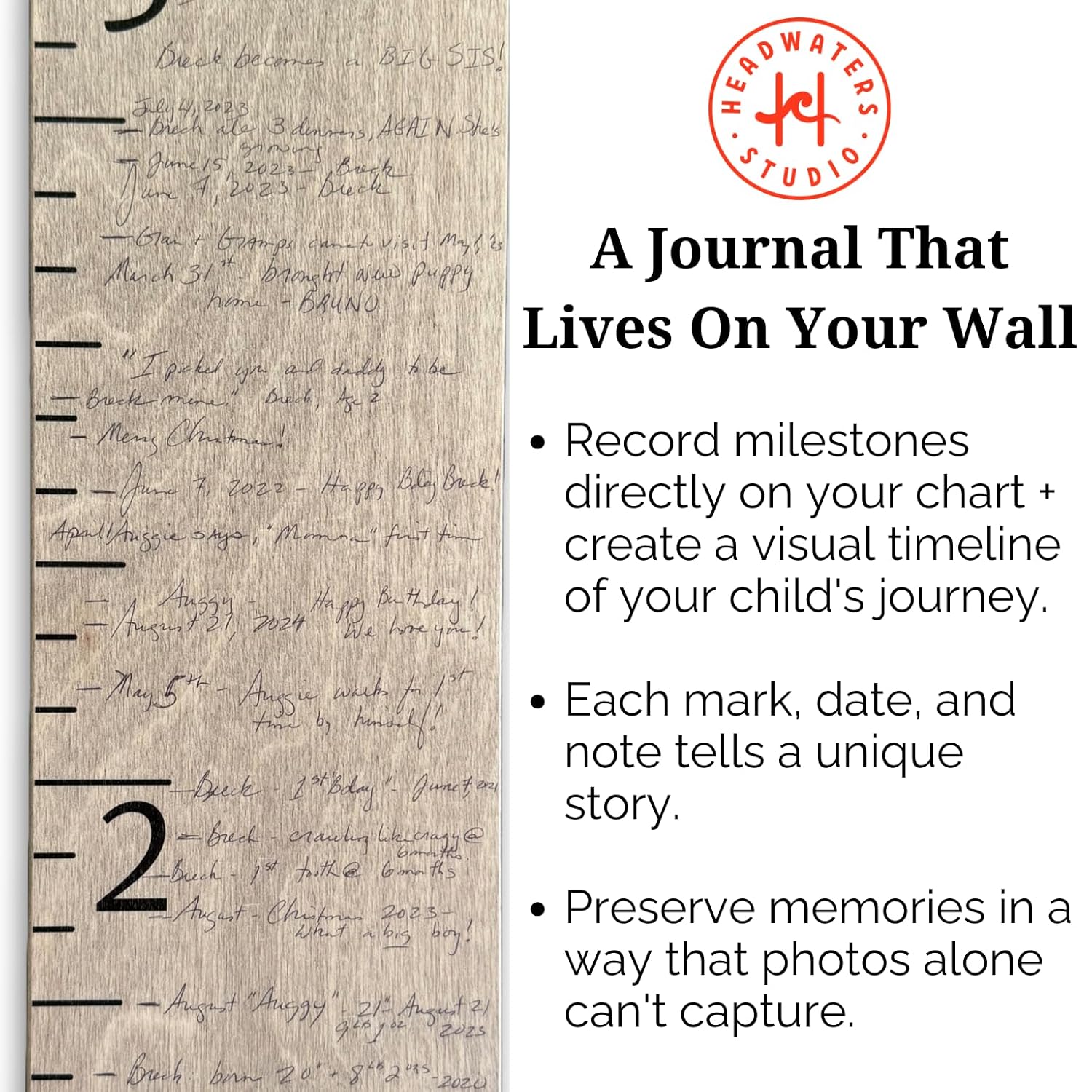 Height Ruler for Wall - Child Height Wall Chart, Height Chart for Kids Growth Chart for Wall Growth Chart Wood, Wooden Growth Chart for Wall - Gray w/Inches - 63"x5.75"