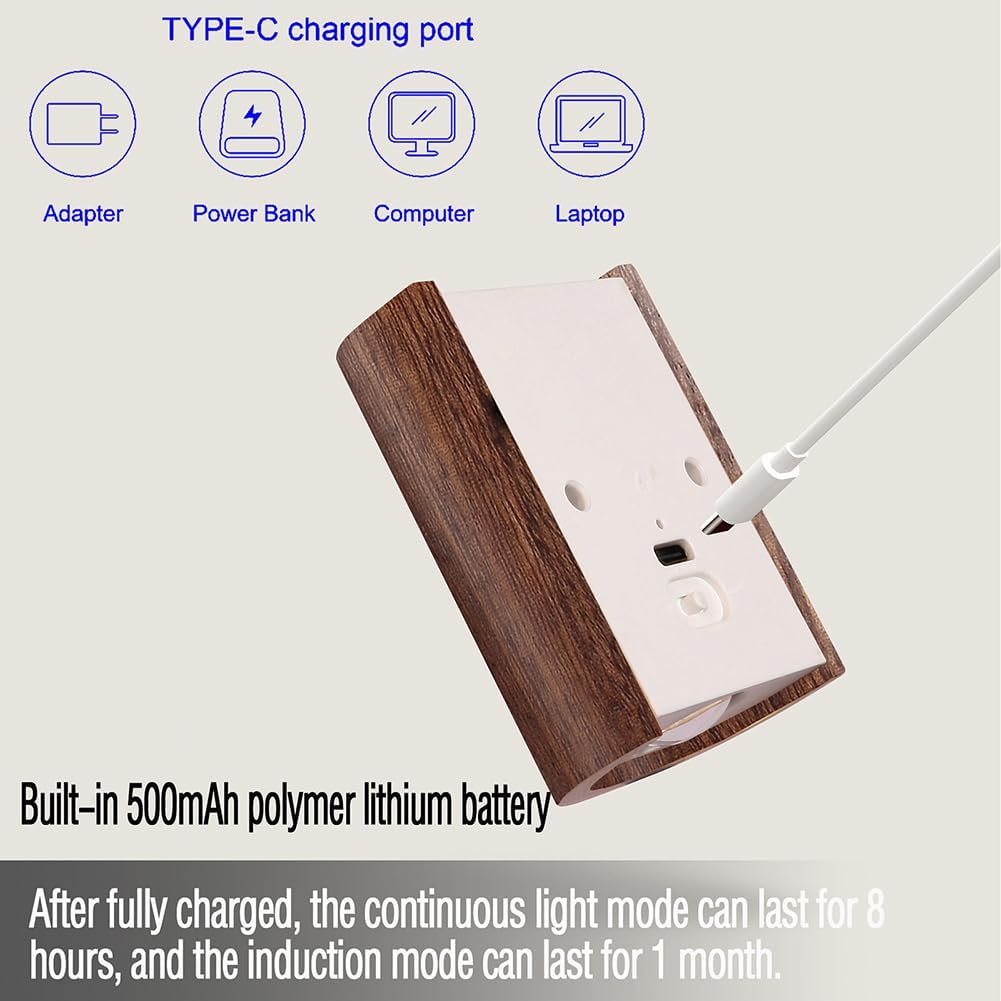 LANDGOO Smart Night Light Step Lights 2 Pack - Rechargeable Motion Sensor Stair Lights, 2700K Warm White LED, Walnut Wood for Hallway & Bedroom Safety
