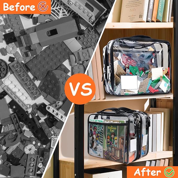 - 【Manual Pocket & PU Leather Handle】The clear name tag is an important part of the toy storage for lego with PU Leather Handle, you can easily identify the items in the case. The manual pocket is an additional feature of the clear storage bags for lego storage, you can find manuals when you need them. The mesh pocket can also store children's favorite toys or picture books.