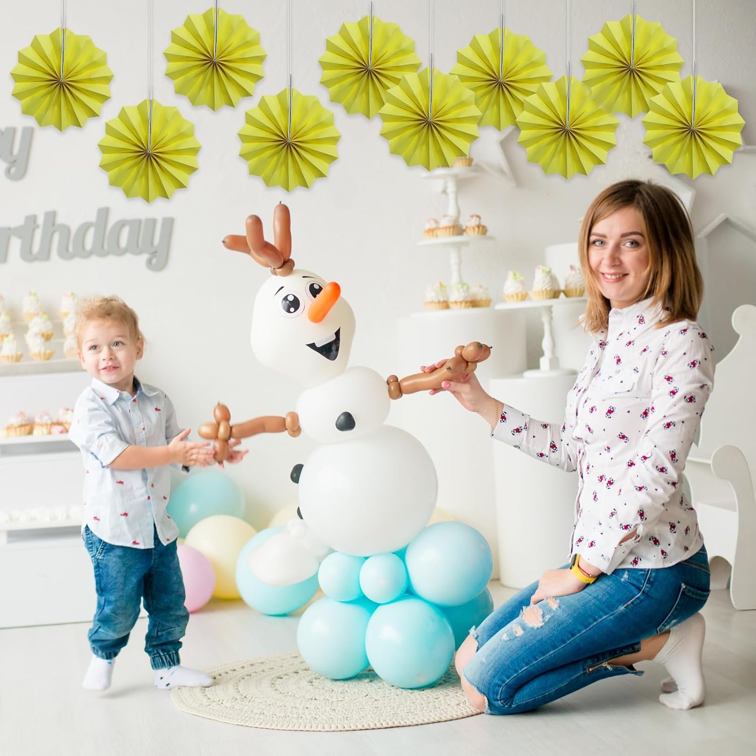 Yellow Party Decorations,Paper Decorations for Party,Lemon Decorations Party Paper Fans Bulk 8in,Anniversary Decorations for Part 30 Color DIY Set (Lemon Yellow)