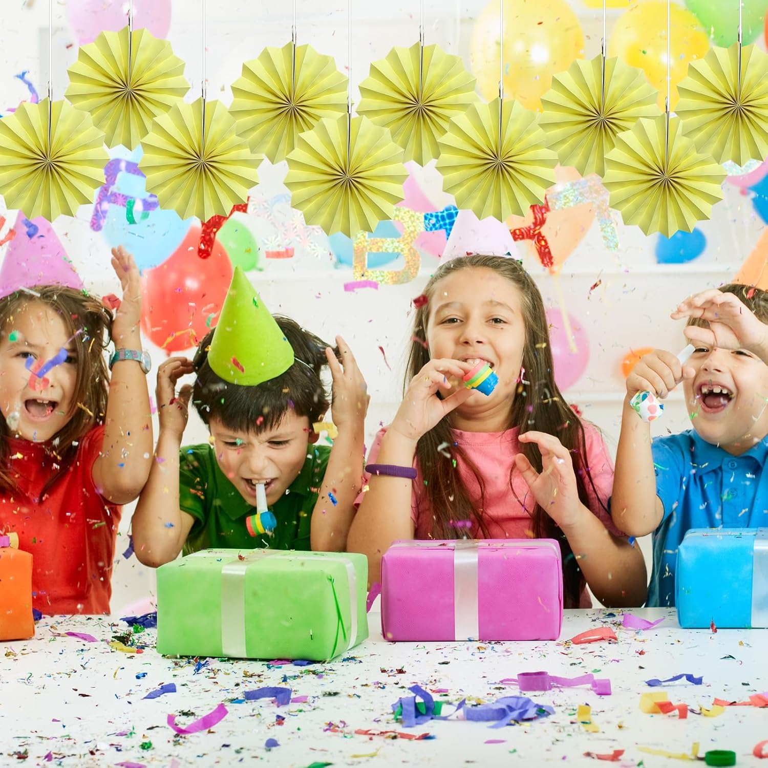 Yellow Hanging Paper Fans,Yellow Accessories Paper Decorations for Party,Color Party Decorations,Bee Themed Classroom Decor,8in Hanging Paper Fans 30 Color DIY Set (Light Yellow)