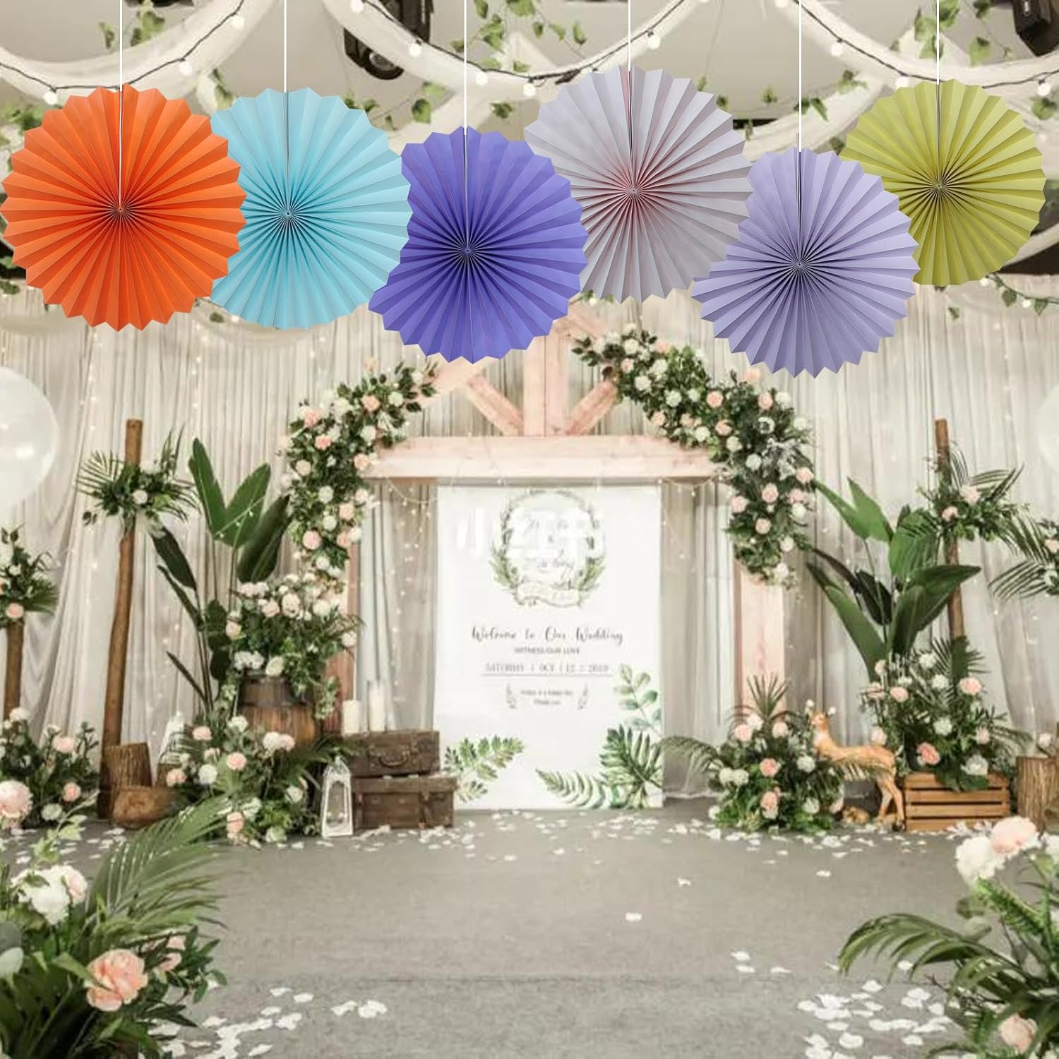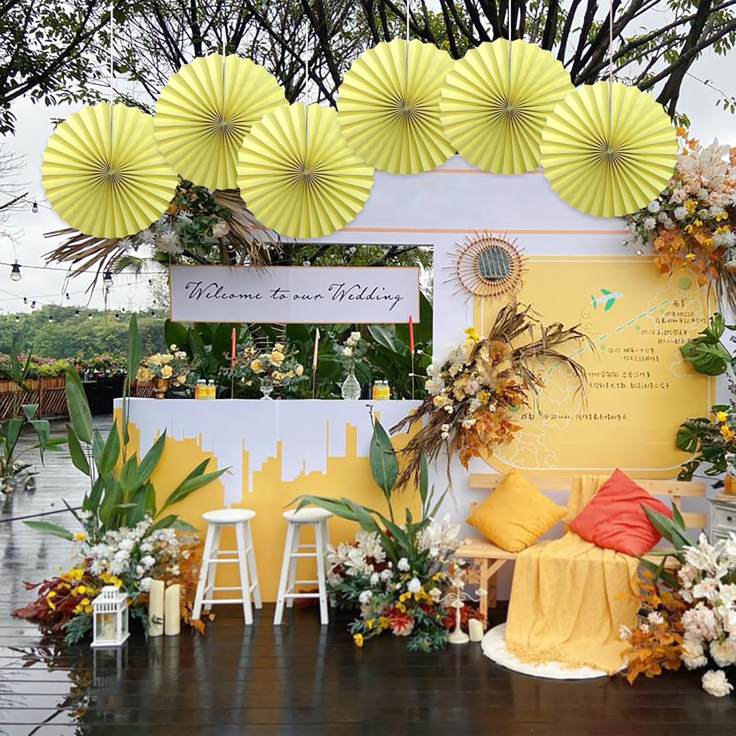 BARTHEW Yellow Hanging Paper Fans,Yellow Accessories Paper Decorations for Party,Color Party Decorations,Bee Themed Classroom Decor,16in Hanging Paper Fans 30 Color DIY Set (Light Yellow)