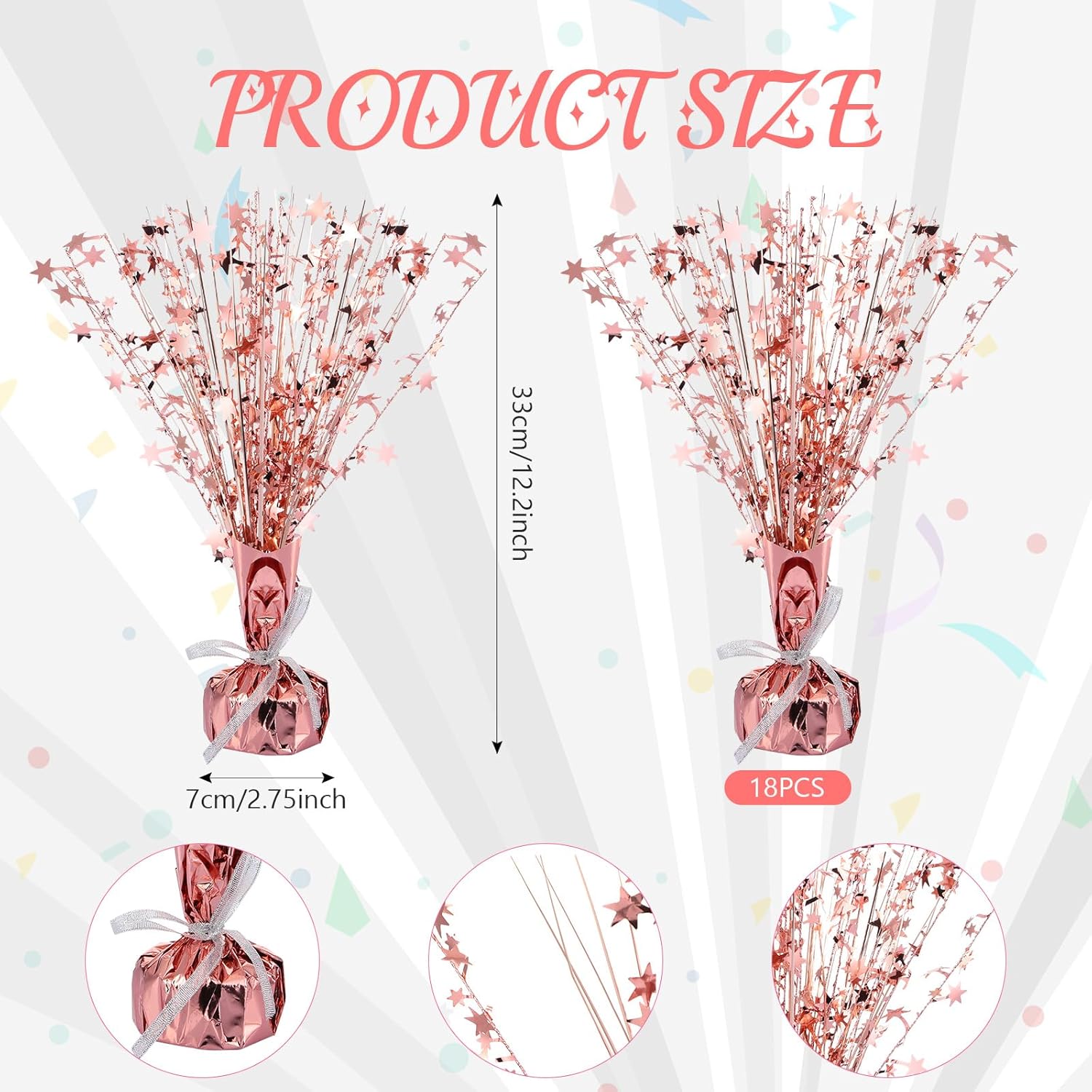Crowye 18 Pieces Metallic Foil Spray Centerpiece Party Star Table Decoration Burst Metallic Table Centerpieces for Birthday Party Season Holiday(Rose Gold)