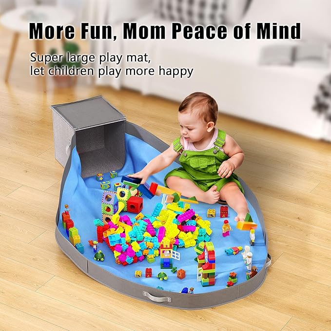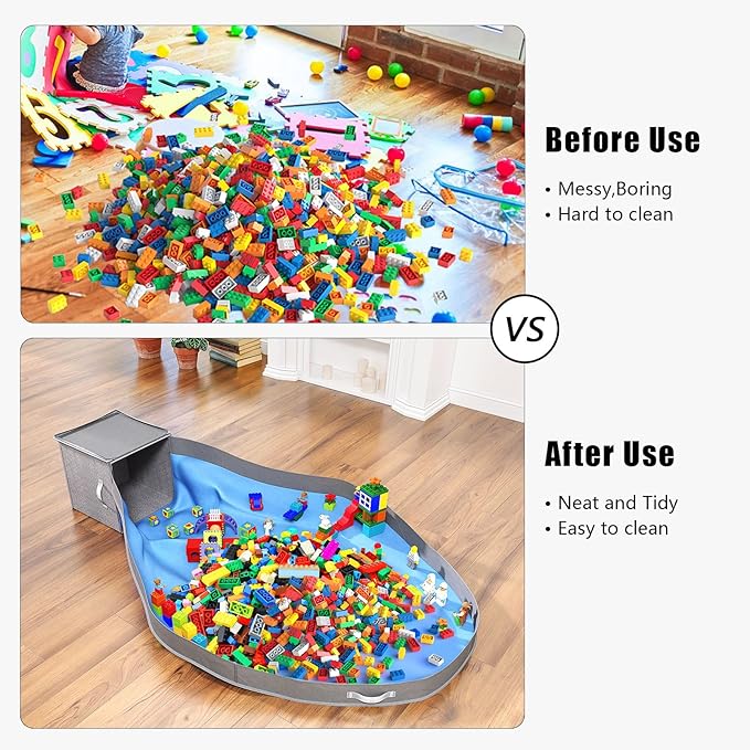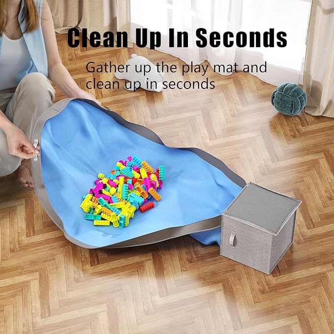 - Instant Clean-Up: The play mat feature of our toy storage enables kids and parents to gather toys with a simple pull of the corners, transforming a scattered play area into a tidy space in seconds. The Toy Storage Basket serves as a hassle-free organizer for daily toy storage
