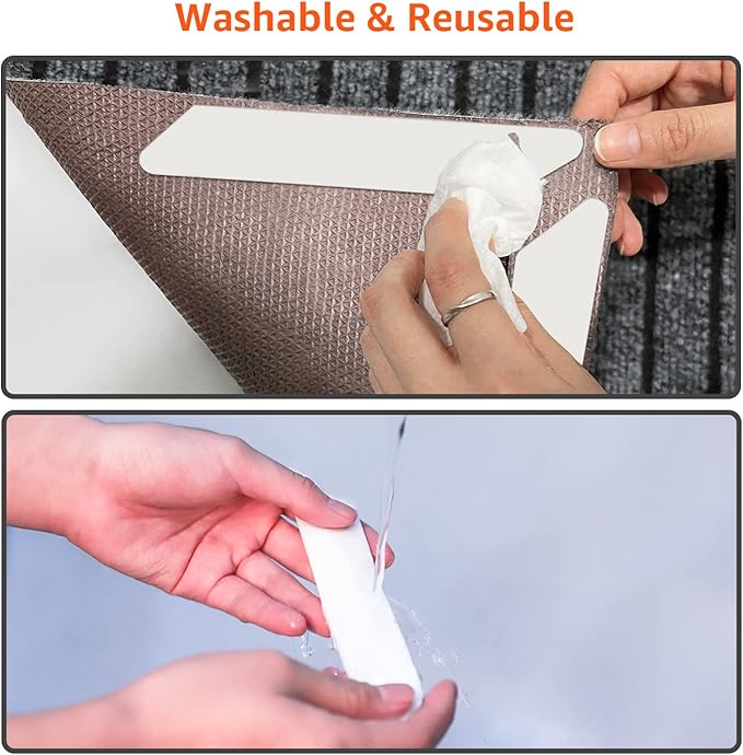 - 🌈【NO RESIDUE AND DAMAGE】This rug stoppers designed by premium updated adhesive technology, without the residue of the paste when removed it, you don’t need to worry about the damage for your floor, please take it easy to use it on hardwood floors, tile floors, laminate, marble, concrete, rubber, wall etc.