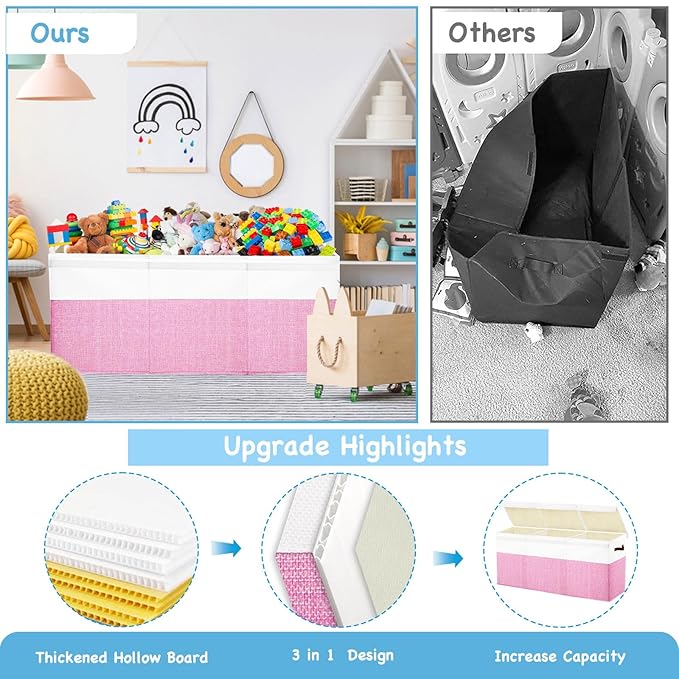 Large Toy Box Chest,Toy Storage Organizer,Storage Bins with Lids,Stuffed Animal Storage,Toy Bins for Kids,Toddlers,Baby,Girls,Nursery,Living Room,playroom(Pink)