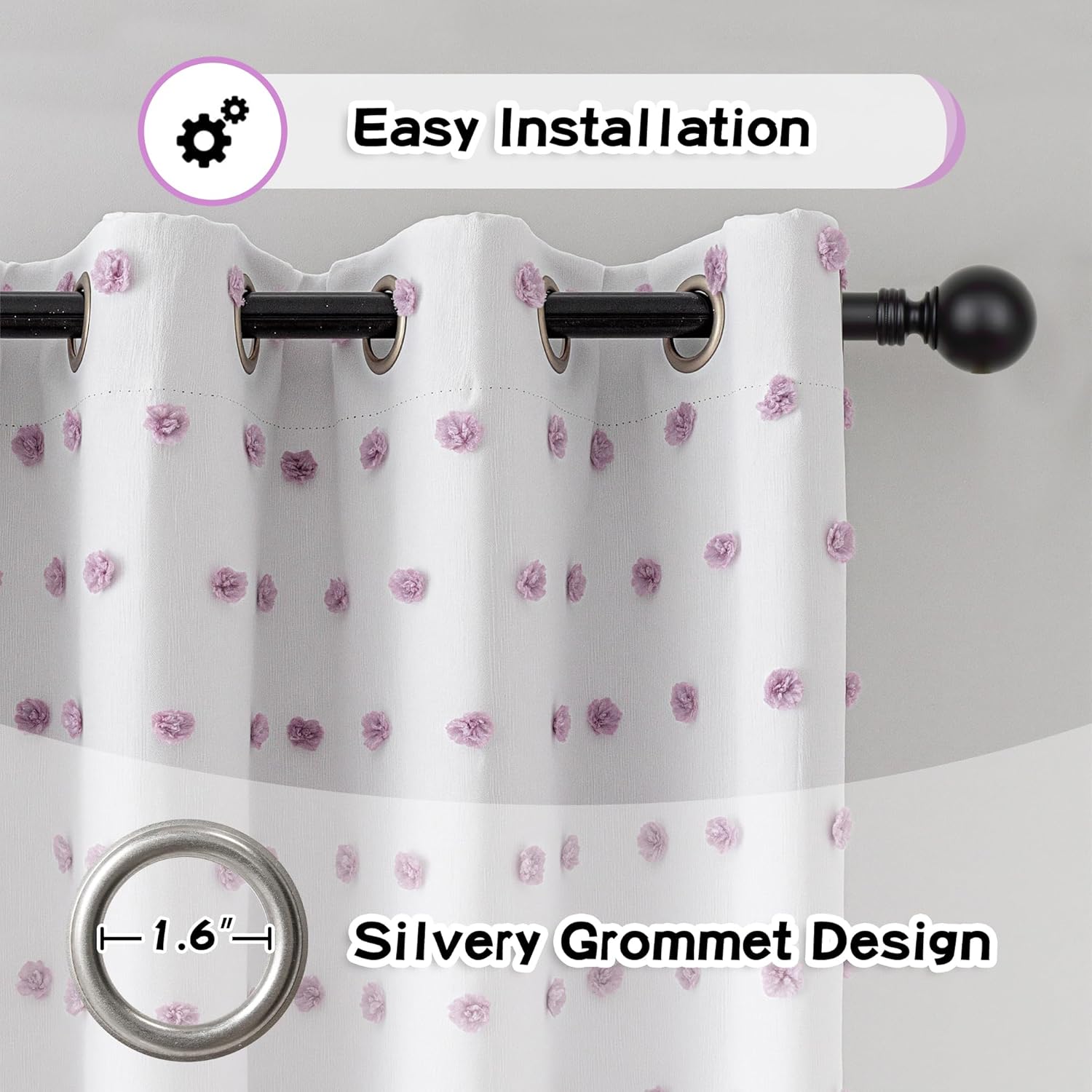 - Unique Design:These cute pom poms combine bohemian elements with modern style. The white sheer curtain is embellished with cute pom poms, adding interest, glamour and a beautiful look to your windows.
