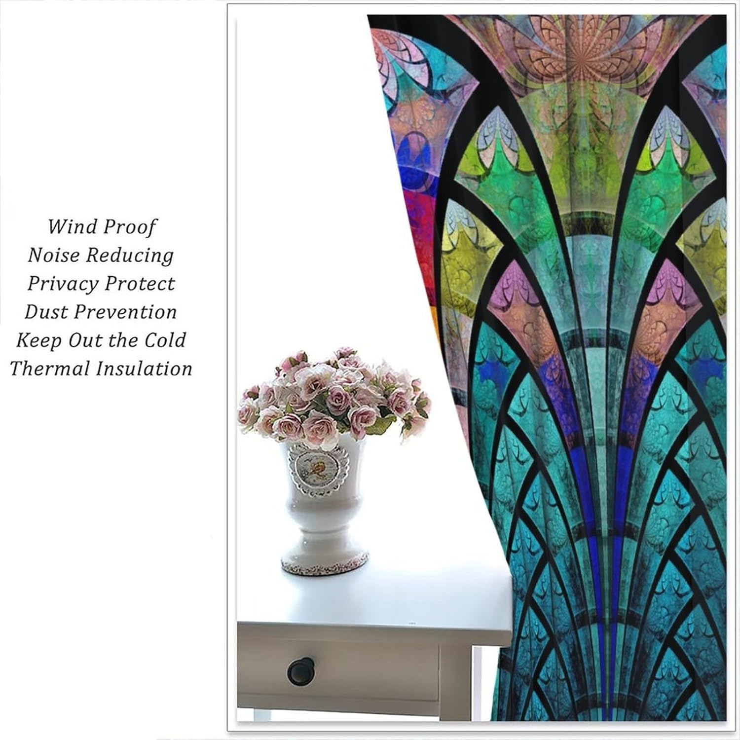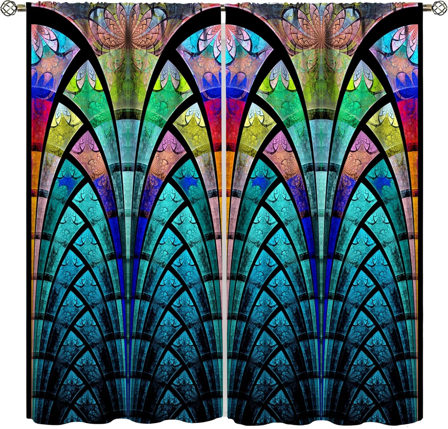 Stained Glass Curtains,Retro Design Style Colorful Abstract Art Home Decor Drapes for Bedroom Living Room Kitchen Window Treatment 2 Panels Set Total Size 84" W X 84" L Inch