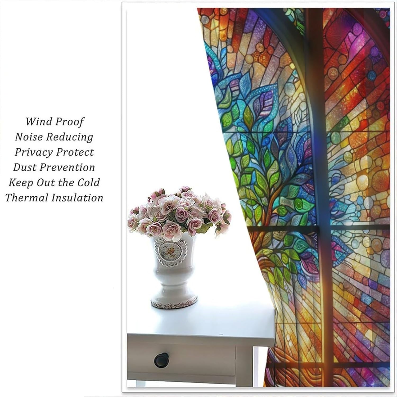 Stained Glass Curtains,Tree of Life Colorful Abstract Art Home Decor Drapes for Bedroom Living Room Kitchen Window Treatment 2 Panels Set Total Size 42" W X 45" L Inch