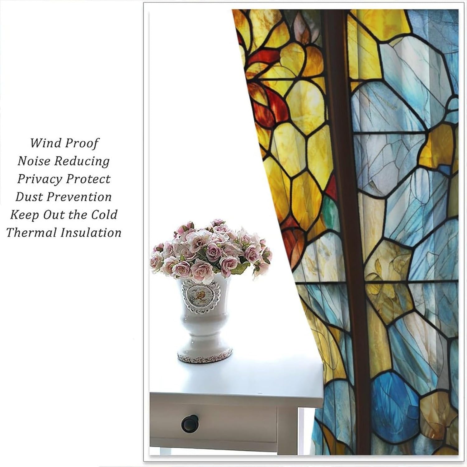 Stained Glass Curtains,Retro Abstract Colorful Art Home Decor Drapes for Bedroom Living Room Kitchen Window Treatment 2 Panels Set Total Size 63" W X 72" L Inch